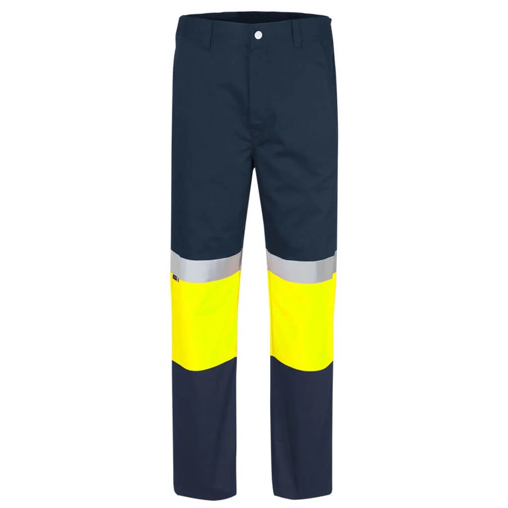 Skip to contentFluorescent fabric for increased day time visibility and elasticated back waistband. Triple needle stitching on inner leg and back rise. Two deep slant pockets with self fabric pocket bag. Concealed YKK zip and bar tacks on stress points. 50mm VizLite 201 silver reflective tape.